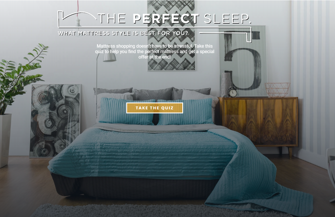 Increase Leads by 400%Has side banner “Start Sleeping Better”{ to begin a series of questions, leading customer to the best mattress for their individual comfort